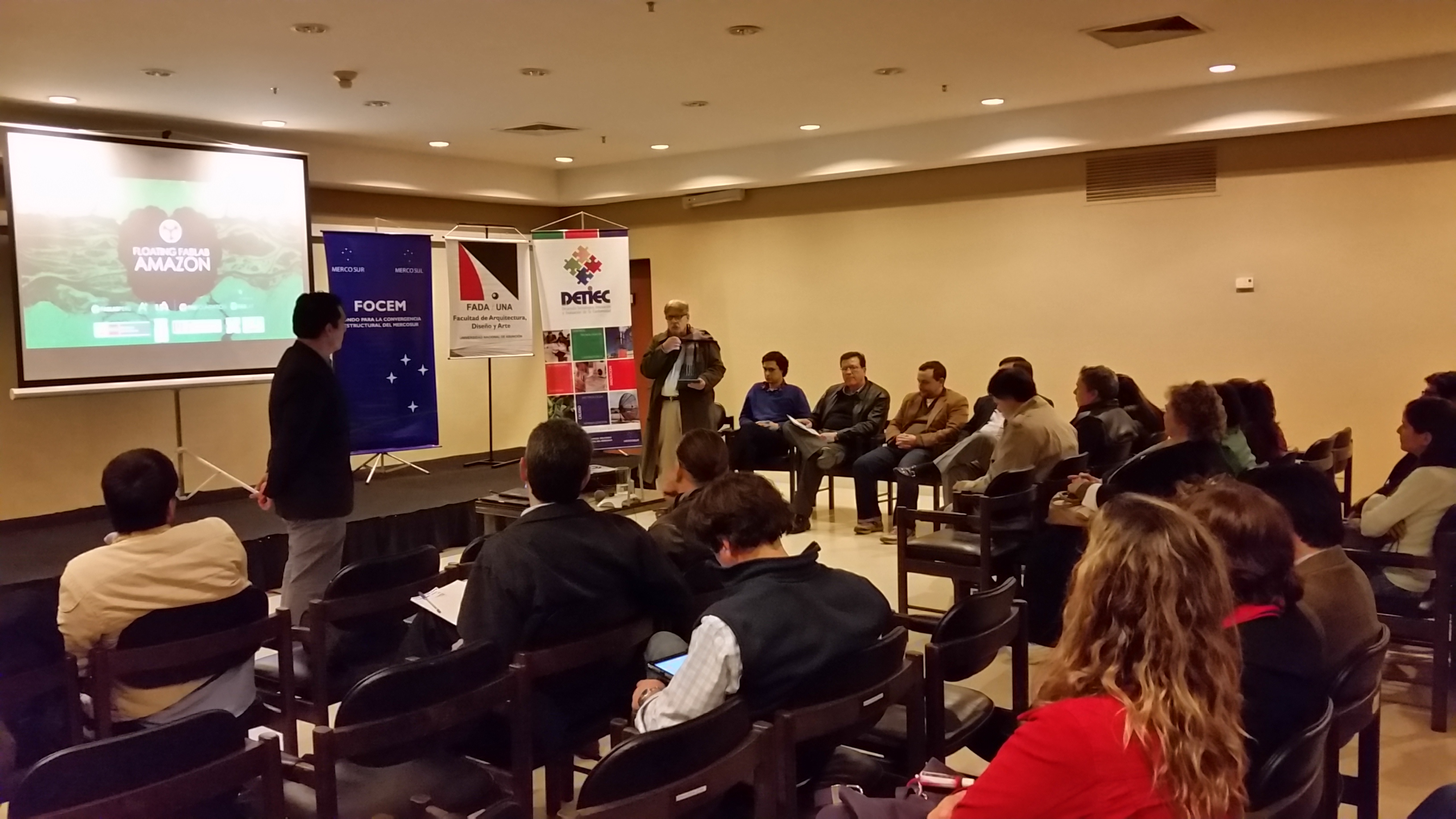 La actividad se llevó a cabo según el calendario el día viernes 17 de julio a las 19:30 hs en el salón auditorio de la Unión Industrial Paraguaya. Asistieron a la conferencia el Decano de la FADA UNA, docentes de la carrera de Diseño Industrial (Lic. Celso López), autoridades y técnicos del CONACYT incluyendo al Ing.Felix Kemper, también representante de la UIP; al Dr. Idelin Molinas, la Ing. Mónica Casanueva y el Ing. Alcides Corbeta; así mismo acompañó la Arq. Teresa Stefanich en representación del Parque Tecnológico de Itaipú PY, además de estudiantes universitarios y profesionales.