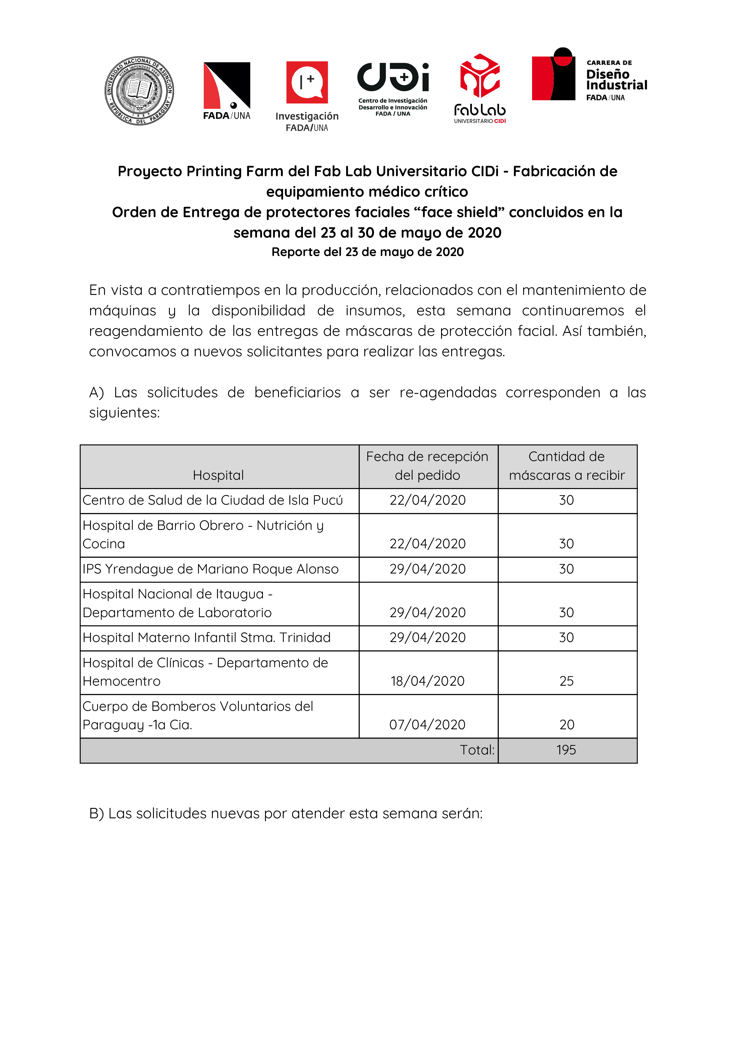 Entrega semanal de máscaras a hospitales – Semana del 23 al 30 de mayo-1